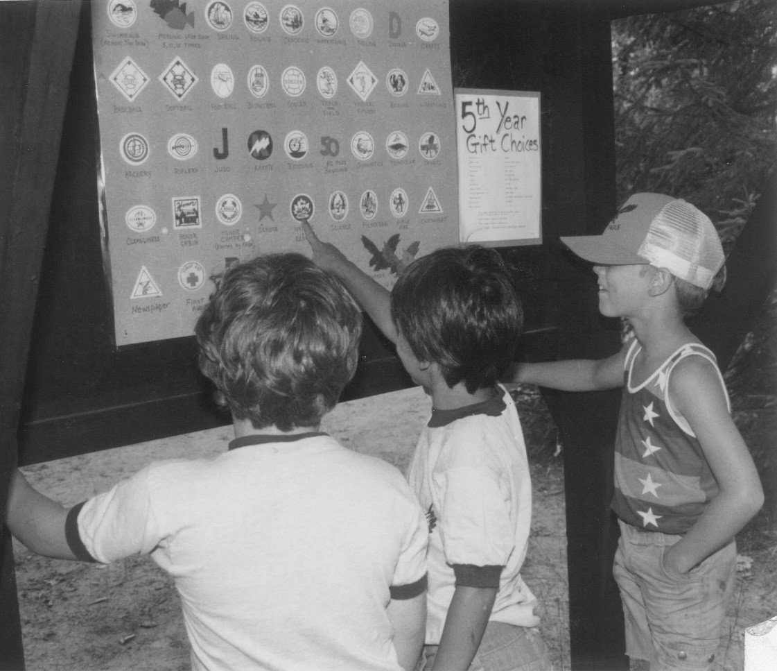 And how about the power of positive recognition? Alex sure knew how to motivate young boys. Every day we made our bunks, cleaned our cabins and stood at attention during inspection hoping to earn our Cleanliness Award and then Honor Cabin Award. Every day we worked hard at having fun, learning new skills while we earned our Archery Award, Riflery Award, Water-skiing, Fishing, Canoeing, Swimming, Basketball, Baseball, Judo, Trampoline, Crafts, Hiking, Newspaper and Nature Awards – just to name a few. Eight awards earned a Green Eagle. Sixteen awards earned a Gold Eagle. Twenty-four awards earned a Brown Eagle. I worked hard to earn those awards and to this day I am still proud of my accomplishments. I know many of you are, too, because you brought your sashes – covered with awards – back to the Reunion, as did I.